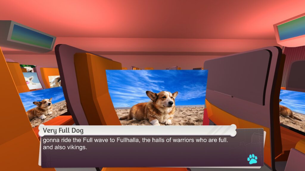 The gameplay itself is trying to find you way around the different airports on different planets. The dogs will send you on fetch quests, the writing is an alien language so you need to find the right gate at the right time to take your flight. This is also where the game slightly falls apart, because the jokes do get old, but the airports are big, the dogs repeated with the same shops and shopkeeper, and not all airports are connected together. So, sometimes you just need to do your fetch quests to get back to an airport were your already passed by in order to go to where you need to go. If the game is not long in itself, these moments can get a bit boring, failing to put it in the best-case scenario for me. But it was still a heck of a ride and laughs. And of course, you can pet every dog. And yes, there are achievements for petting dogs a lot. Like a lot lot. In a single session.